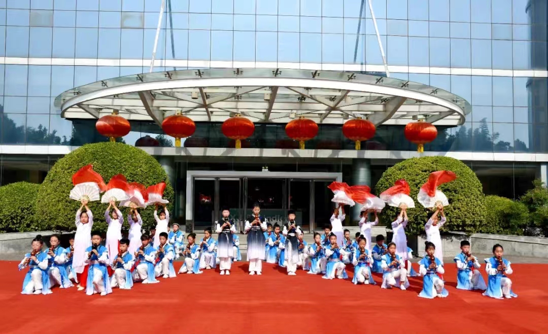 活動現場,70余名優秀學生代表載歌載舞,用啦啦操《我和我的祖國》、葫蘆絲合奏《萬疆》等精彩的表演,表達對西繼迅達的深深謝意。
