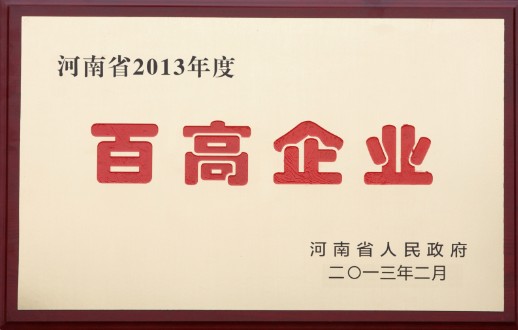 3月初,河南省人民政府公布了2013年度河南省百高企業(yè)名單,公司榜上有名,這是公司繼2011年度、2012年度之后,再次入選“河南省百高企業(yè)”。