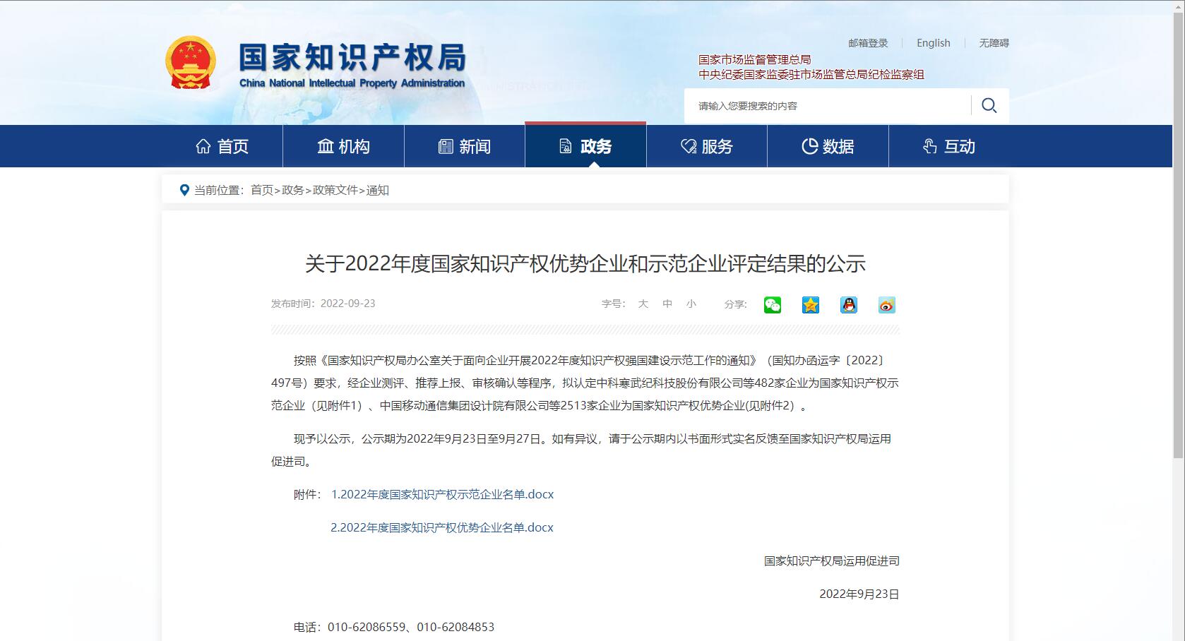 5月26日,國家知識(shí)產(chǎn)權(quán)局辦公室下發(fā)國知辦函運(yùn)字〔2022〕497號(hào)文件《國家知識(shí)產(chǎn)權(quán)局辦公室關(guān)于面向企業(yè)開展2022年度知識(shí)產(chǎn)權(quán)強(qiáng)國建設(shè)示范工作的通知》。目的就是要著力培育一批知識(shí)產(chǎn)權(quán)數(shù)量和質(zhì)量較高、知識(shí)產(chǎn)權(quán)保護(hù)和運(yùn)用能力較強(qiáng),知識(shí)產(chǎn)權(quán)市場競爭優(yōu)勢初步形成,具有區(qū)域影響力的優(yōu)勢企業(yè),以及具有一定引領(lǐng)帶頭作用的示范企業(yè)。國家知識(shí)產(chǎn)權(quán)局按照文件通知要求,經(jīng)企業(yè)測評(píng)、推薦上報(bào)、審核確認(rèn)等程序,于9 月23 日正式發(fā)布公示通知,擬認(rèn)定482 家企業(yè)為國家知識(shí)產(chǎn)權(quán)示范企業(yè)、2513家企業(yè)為國家知識(shí)產(chǎn)權(quán)優(yōu)勢企業(yè)。