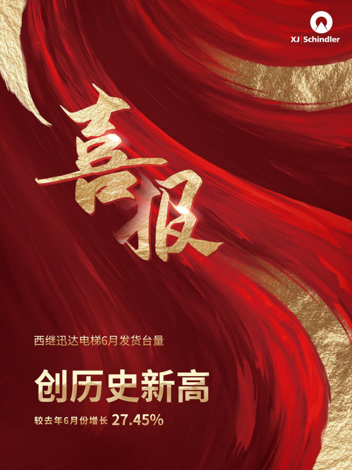 剛剛過去的6月,是西繼迅達發展歷程上激情四射的月份,不僅訂單量爆棚,發貨臺量也迎來了歷史性的突破,單月發貨臺量再創歷史新高,較去年同期增長27.45%。