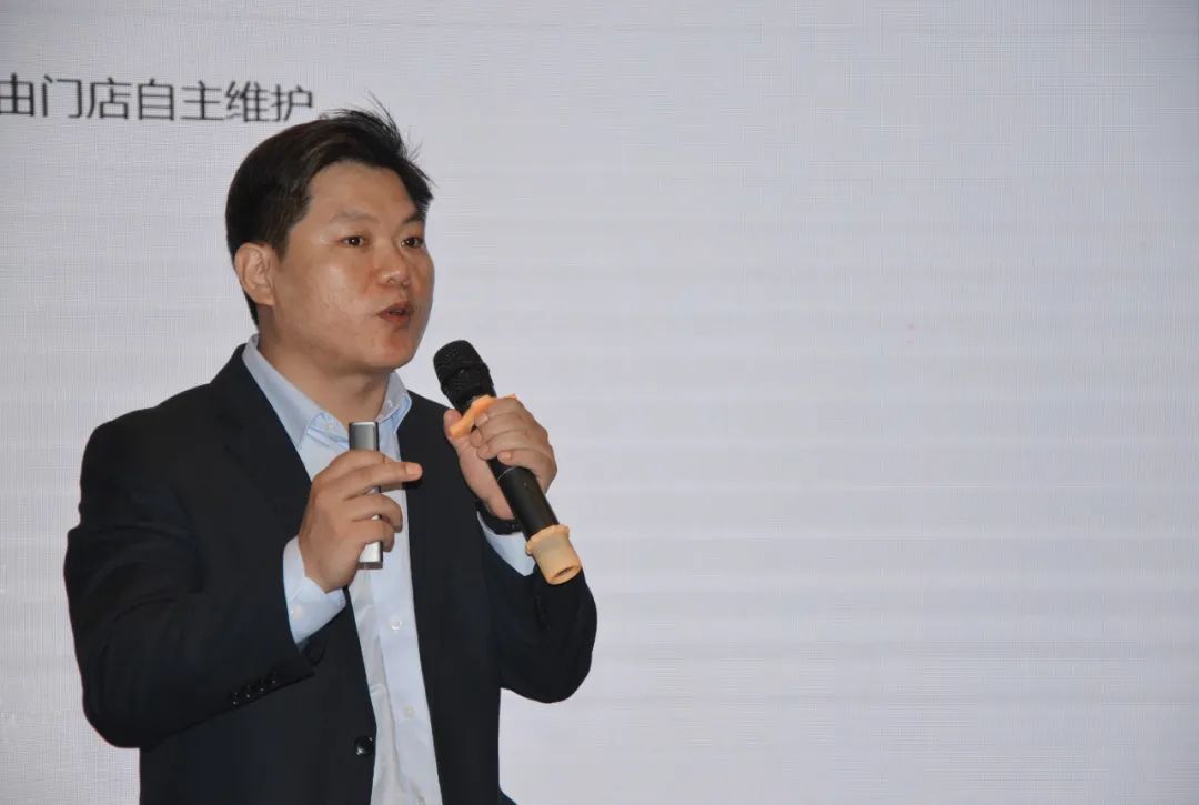信息工程中心研發(fā)總監(jiān)周振朋講解公司開發(fā)的數(shù)字化專業(yè)高效門店系統(tǒng)