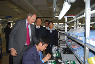 日前,瑞士迅達集團副董事長Mr.Luc Bonnard(上圖左),總裁Mr.Tinggren(上圖右)先后蒞臨公司,在公司董事長劉金忠、總經(jīng)理劉剛、常務(wù)副總經(jīng)理李國鈞、副總經(jīng)理陳衛(wèi)東的陪同下,對公司各個廠區(qū)的生產(chǎn)情況、銷售狀況、項目安裝運行情況等等,進行了詳細查看和了解,并對公司整體生產(chǎn)經(jīng)營情況給予了較高評價。圖為公司領(lǐng)導(dǎo)陪同Mr.Luc Bonnard和Mr.Tinggren在車間視察。