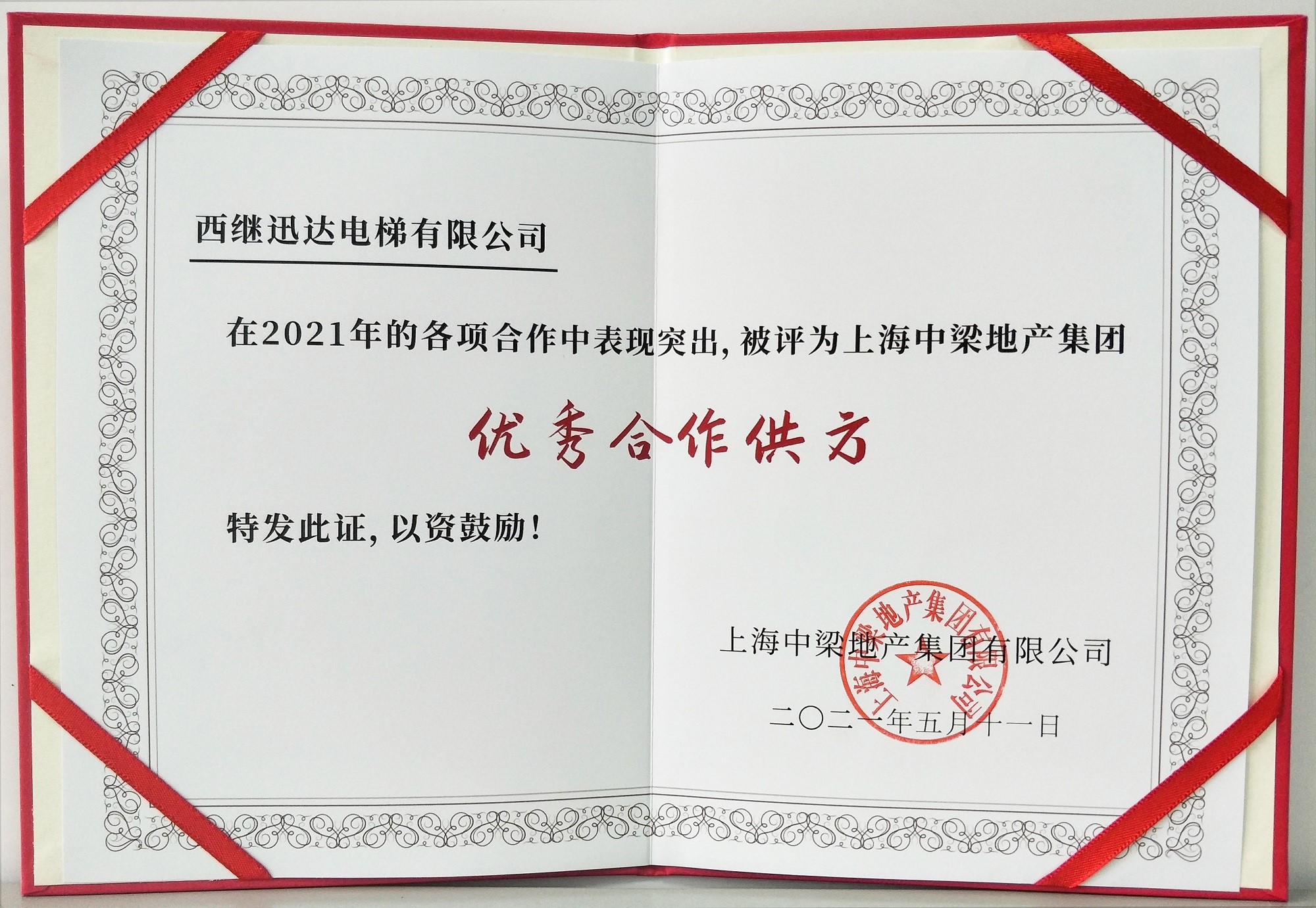 一直以來,西繼迅達的規模實力穩步提升,產品品質不斷提高,廣受客戶好評,此次獲得中梁地產年度優秀合作供方的殊榮,不僅是對西繼迅達電梯的高度認可,更是對企業未來持續發展的一份鼓勵和鞭策。未來,西繼迅達將一如既往,持續以客戶的需求和滿意為奮斗目標,服務好每一位客戶,讓西繼迅達的品牌熠熠生輝!