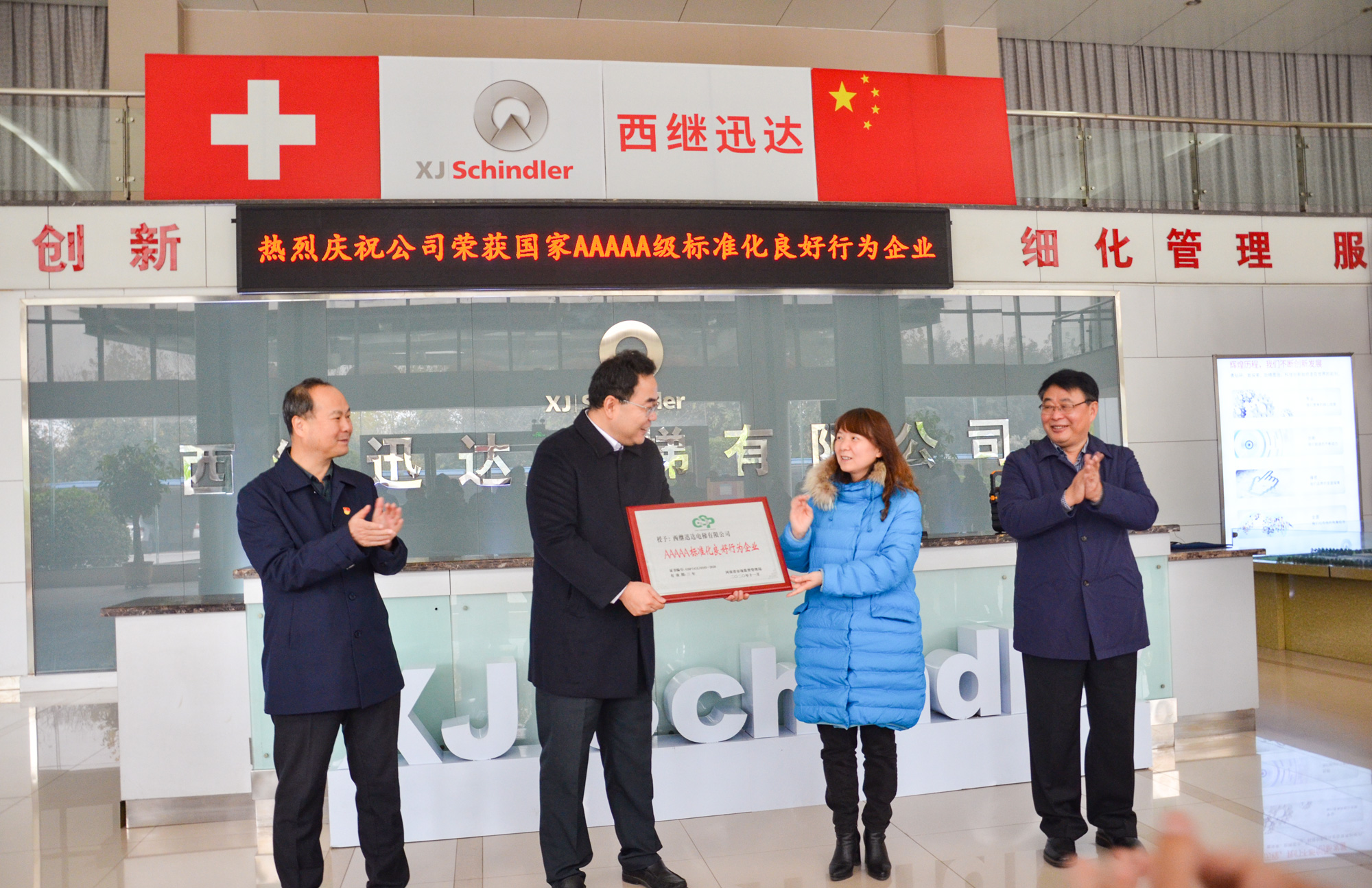 11月30日上午,河南省市場(chǎng)監(jiān)管局標(biāo)準(zhǔn)化處李莉處長(zhǎng)一行,在許昌市市場(chǎng)監(jiān)管局黨組書記、局長(zhǎng)田德海,開發(fā)區(qū)管委會(huì)主任蔚鐘聲的陪同下蒞臨西繼迅達(dá)電梯,親自為西繼迅達(dá)AAAAA級(jí)標(biāo)準(zhǔn)化良好行為企業(yè)授牌。