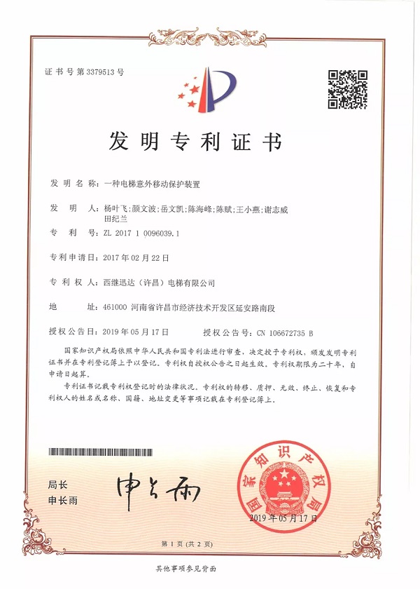 日前,西繼迅達(dá)在一天之內(nèi),同時(shí)獲得國(guó)家知識(shí)產(chǎn)權(quán)局為公司頒發(fā)的兩件發(fā)明專利證書,至此前五個(gè)月公司共獲得授權(quán)專利55件,專利累計(jì)總量增至1226件。