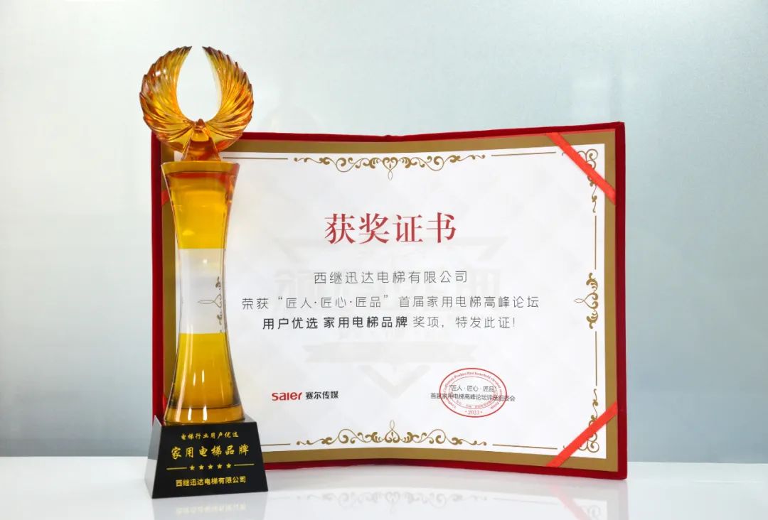 西繼迅達(dá)電梯榮獲“用戶優(yōu)選家用電梯品牌”榮譽(yù)稱號(hào)