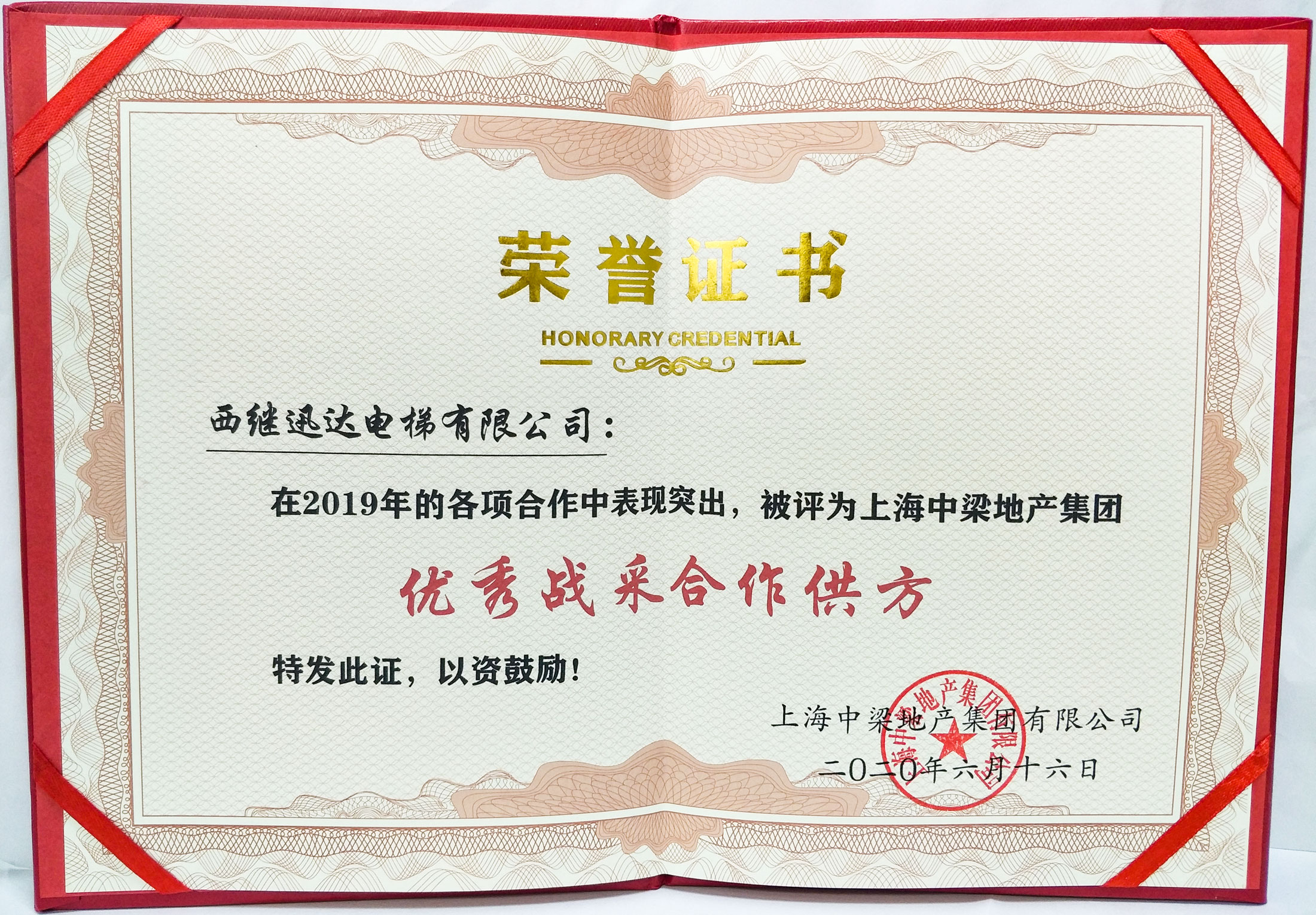 西繼迅達(dá)被評(píng)為中梁地產(chǎn)年度優(yōu)秀戰(zhàn)采合作供方