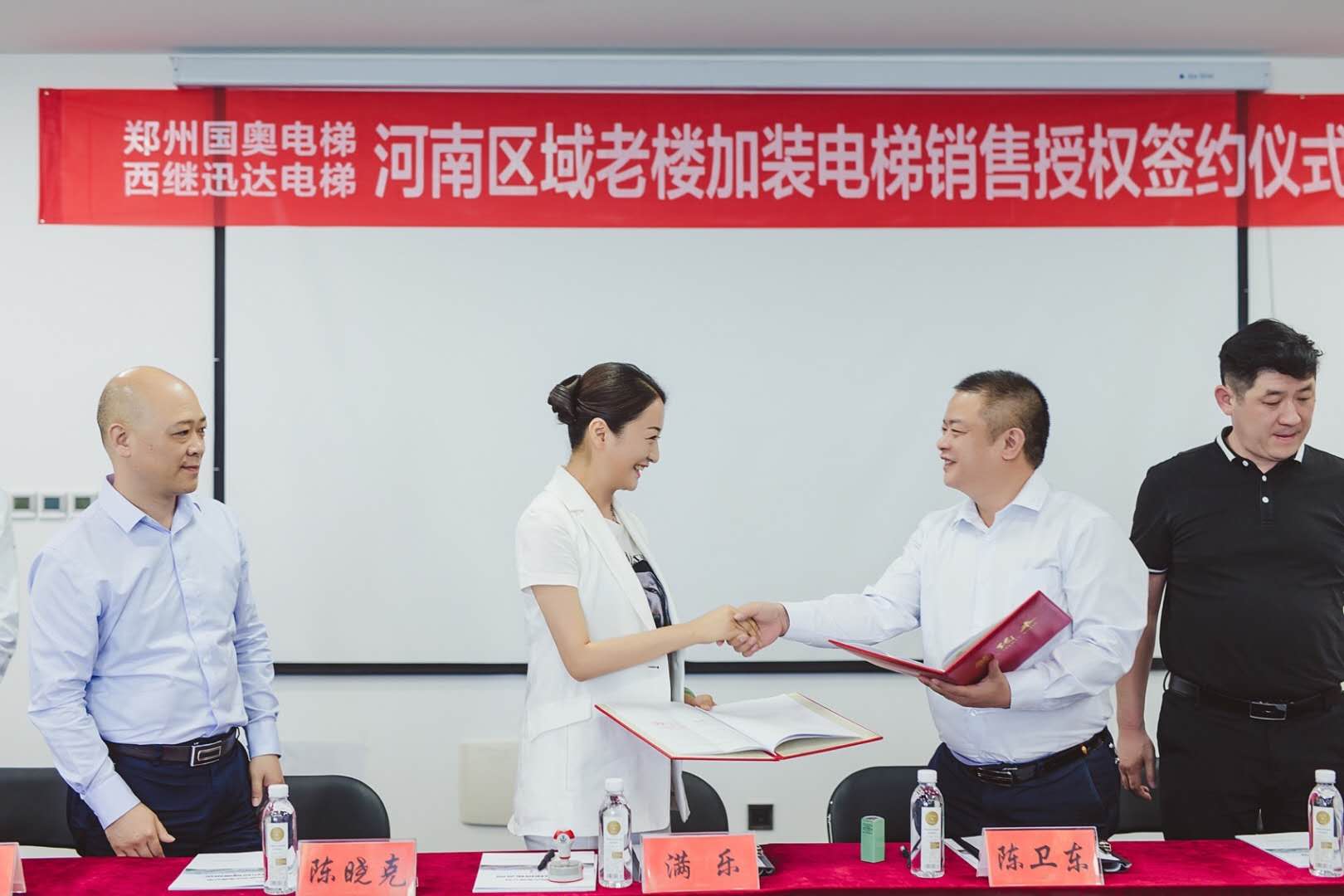 公司與鄭州國(guó)奧電梯進(jìn)行河南區(qū)域老樓加裝電梯銷售授權(quán)簽約