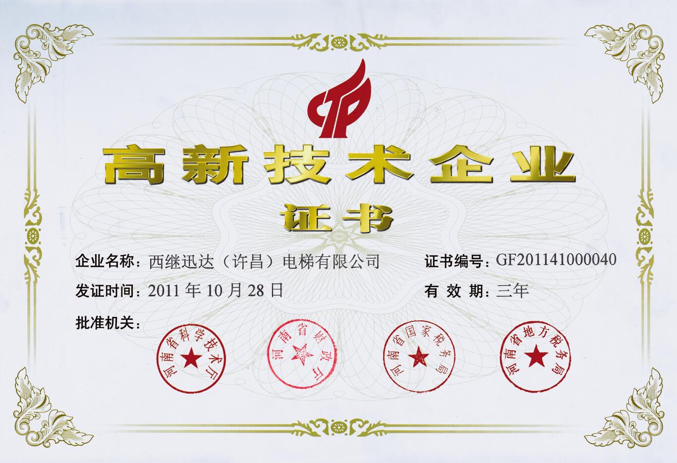 西繼迅達電梯九種產品被認定為河南省工業節能產品