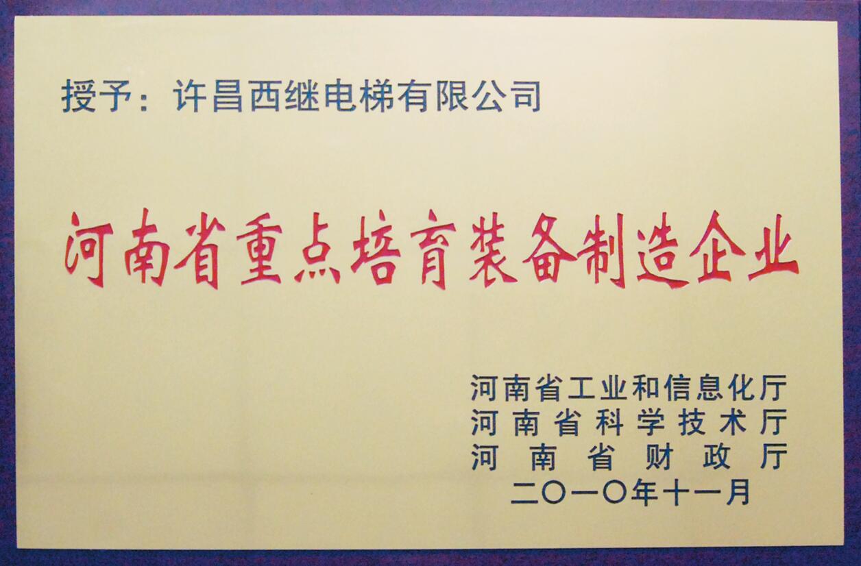 公司獲評河南省重點(diǎn)培育裝備制造企業(yè)