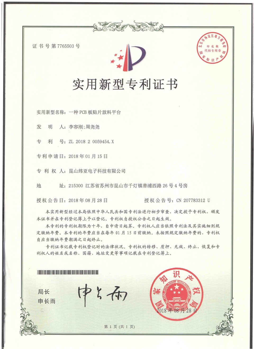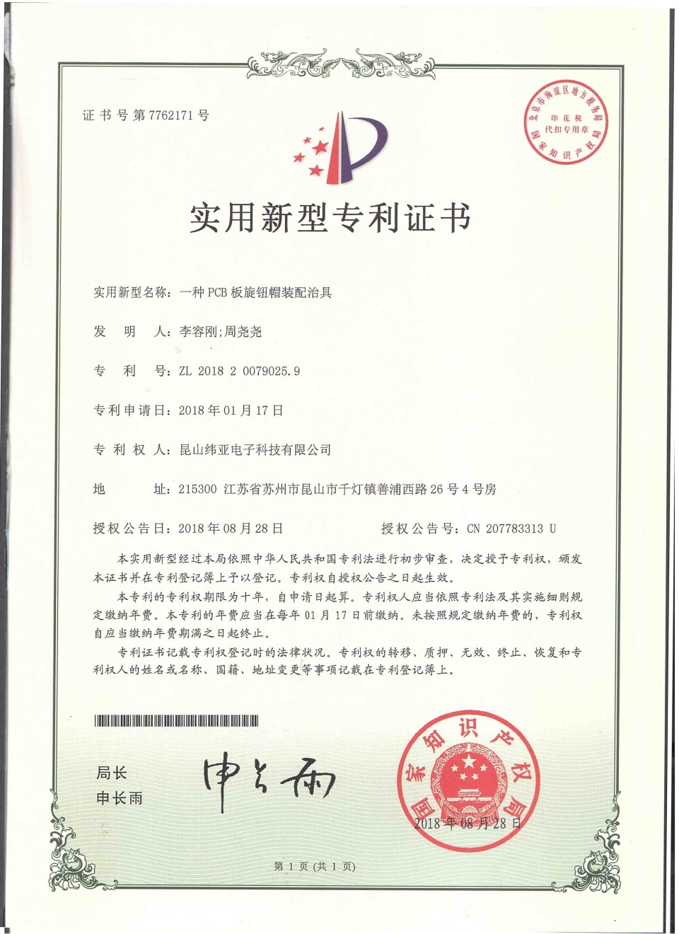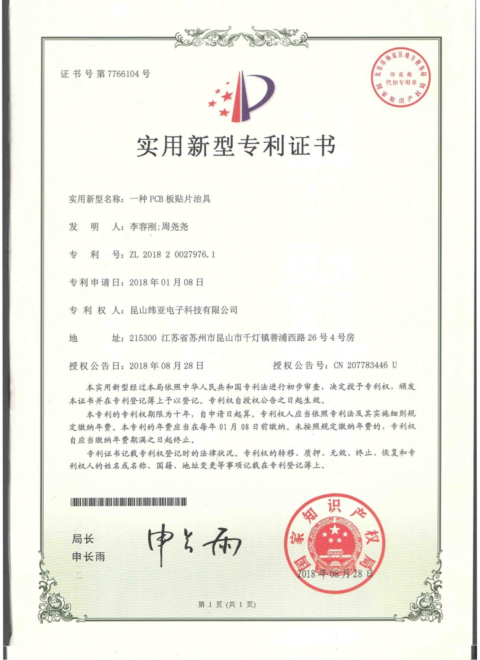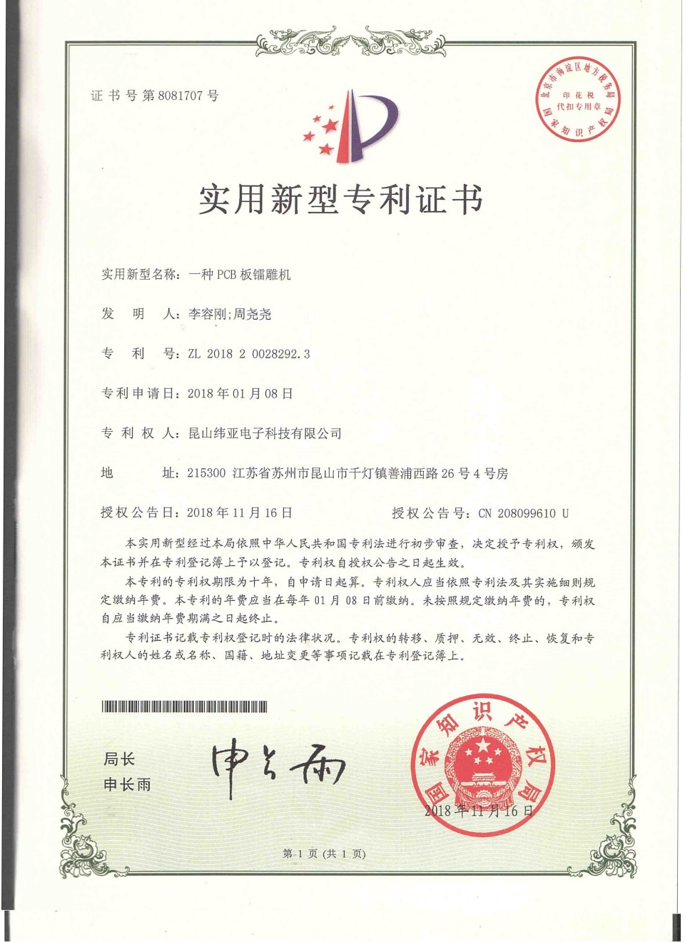 首頁(yè)  關(guān)于緯亞專利證書(shū)