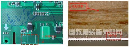 圖5 PCB表面鼓起位置及其金相切片圖