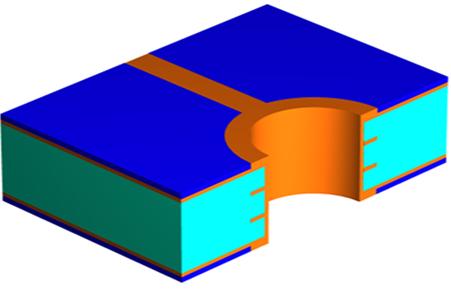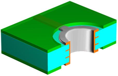 為了使通孔能在各層之間導通(使孔壁上之非導體部份之樹脂及玻纖束進行金屬化),在孔中必須填充銅。一步是在孔中鍍薄薄一層銅,這個過程完全是化學反應。終鍍的銅厚為50英寸的百萬分之一。