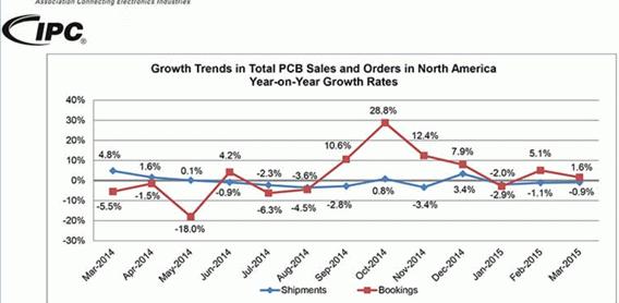 IPC市場(chǎng)調(diào)研總監(jiān)Sharon Starr女士說:“北美PCB行業(yè)的銷售狀況仍然延續(xù)去年的疲軟態(tài)勢(shì),但是訂單狀況已經(jīng)好于去年,有走強(qiáng)的態(tài)勢(shì)。三月份訂單與銷售雙雙走強(qiáng)是受正常的周期性需求影響;訂單出貨比在過去六個(gè)月都處在良性區(qū)域,這對(duì)2015年二、三季度的銷量是個(gè)積極的信號(hào)。“
