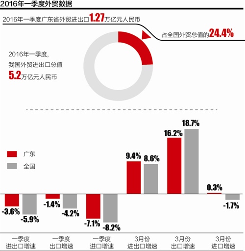 經(jīng)歷數(shù)月低谷徘徊后,一季度我外貿(mào)迎來“小陽春”。一季度我外貿(mào)總值同比下降5.9%,降幅已開始逐步收窄。其中,3月份進(jìn)出口增速為8.6%。廣東省更是表現(xiàn)搶眼,3月份進(jìn)出口增速達(dá)到9.4%。