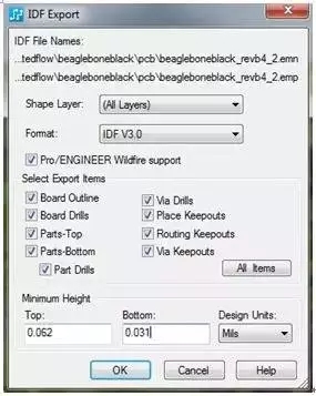 系統需要能夠以與 DXF 參數設置類似的方式,來控制 IDF 文件中將包含的內容,如圖 6 中所示。如果某些元器件沒有高度信息,IDF 導出能夠在創建過程中添加缺少的信息。