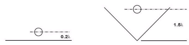 如果接地面積遠小于一個波長(例如:一支單極天線安裝在一輛車上),則其天線場型與自完整的接地面積所計算出的場型相比,是大不相同的。