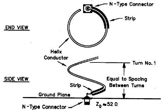 螺旋天線很簡單但非常有效,它以簡易的輻射體結構來提供增益。下圖是其尺寸的實例: