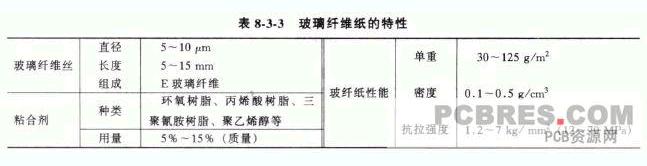 (5) 增強(qiáng)材料CEM-3 采用電子級(jí)玻璃纖維布和電子級(jí)玻璃纖維紙兩種增強(qiáng)材料。面料的增強(qiáng)材料一般用7628 玻璃纖維布,對(duì)一些特殊用途的CEM-3 也采用2116 玻纖布,但會(huì)增加產(chǎn)品成本。玻纖布和玻纖紙必須經(jīng)過硅烷偶聯(lián)劑表面處理,以提高耐潮濕性、耐熱性、電氣絕緣性。玻纖紙的強(qiáng)度較低和內(nèi)應(yīng)力很小,其對(duì)板材翹曲影響較小,而玻纖布存在編織張力及內(nèi)應(yīng)力殘留、經(jīng)緯紗偏斜等不穩(wěn)定因素,對(duì)CEM-3 翹曲影響較大,因此,必須注意玻纖布的經(jīng)、緯紗的編織密度、緯斜等,同時(shí),生產(chǎn)CEM-3 時(shí)須注意面料要同機(jī)同布。芯料的增強(qiáng)材料采用玻璃纖維紙(簡(jiǎn)稱玻纖紙,又稱玻璃纖維無紡布、玻璃纖維氈、玻璃紙等) ,它由短切玻纖、粘合劑,用濕式短網(wǎng)抄紙機(jī)按抄紙方法制成,其特性見表8-3-3 。CEM-3 用玻纖紙一般以綜合性能好的環(huán)氧樹脂或丙烯酸樹脂為粘合劑;用聚乙烯醇作粘合劑的玻纖紙,雖然價(jià)格便宜,但是耐熱性、耐水性差,已被淘汰出CEM-3 用玻纖紙之列。