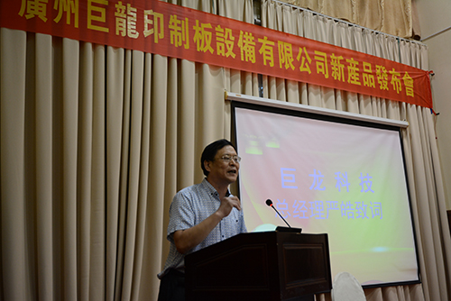 在隨后的新品發布會上,嚴總生動風趣地向在場嘉賓介紹了巨龍的成長與騰飛。巨龍科技成立于1998年,專注致力于PCB設備的研發和制造,專業設計生產PCB內層、外層、HDI及FPC、LCD、TP等水平濕制程設備;2000年,巨龍開始著手研發撓性板設備,十五年的研發之路,成就了巨龍成為內首家成功自主研發制造RTR/DES生產線的企業,開創了內FPC行業的先河。嚴總表示,在未來的三到五年內,將竭盡全力把巨龍打造成世界品牌!