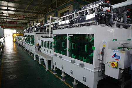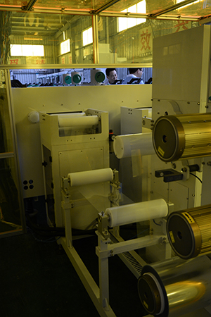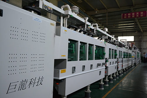 在閆董的帶領陪同下,GPCA/SPCA一行參觀了巨龍自主研發制造的RTR/DES生產線。據介紹,RTR/DES生產線的大特點在于卷對卷、水平雙工位作業,該DES線的過板能力薄0.036mm,板寬度為250mm,同時能生產兩種不同規格的產品,大大提升了生產效率;同時,此DES線還配置了真空蝕刻工藝,有效防止“水池效應”、提高蝕刻均勻性,目前在片對片實驗中極差值已達到了94%以上,量產可達到40um/40um。該DES線不僅節省了勞動成本、提高了整體的生產效率,還有效保證軟板的品質,使軟板生產技術更上一個臺階。