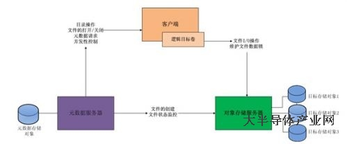 元數據服務器、對象存儲服務器和客戶端可以分別運行于獨立的操作系統中,也可以運行于一個操作系統內部。優的解決方案是元數據服務器位于一個單獨的服務器中,對一個元數據存儲對象提供服務,單獨的對象存儲服務器為多個對象存儲對象提供服務,客戶端也位于單獨的服務器。其結構如下圖所示,圖中為一個元數據服務器,一個對象存儲服務器,和一個客戶端的示意圖,元數據服務器服務于一個元數據存儲對象,對象存儲服務器服務于三個目標存儲對象。