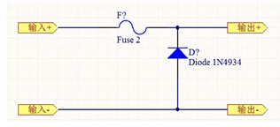 當(dāng)電源接反時,二極管導(dǎo)通,此時的電流比較大,就會將保險絲熔斷,從而切斷電源的供給,起到保護(hù)負(fù)載的作用。
